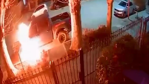 El hecho ocurrió a la madrugada en la intersección de Maipú y San Martín, en la ciudad de General Roca, Río Negro. Imágenes de cámaras de seguridad muestran al atacante rociando el vehículo con nafta y prendiéndolo fuego en segundos, para luego huir corriendo con un bidón en la mano.