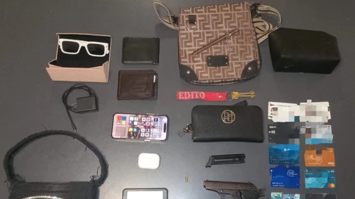 Poco después, observaron a VW Suran en actitud sospechosa que intentó escapar de los efectivos. La Policía logró detener a siete personas, secuestrar una Bersa calibre .22, un morral con documentación de las víctimas, una cartera y una vaina servida.