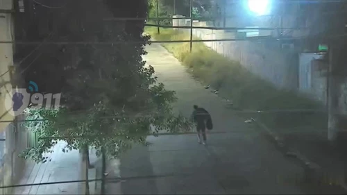 Sólo, de madrugada y con una goma al hombro. La sospechosa escena fue detectada por un operador de cámara de videovigilancia del 911 que dio aviso a la policía.