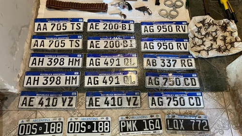 Los investigadores secuestraron dos pistolas 9 milímetros, dos revólveres calibre 22 y uno calibre 32, seis escopetas de diferentes calibres, casi 200 municiones de diversos tipos, un chaleco antibalas, ⁠20 chapas patentes. herramientas para violentar cerraduras y una tijera hidráulica para cortar hierros. También incautaron aproximadamente 100 “miguelitos” de fabricación casera, habitualmente arrojados a la calle durante persecuciones policiales para intentar frenar a patrulleros.