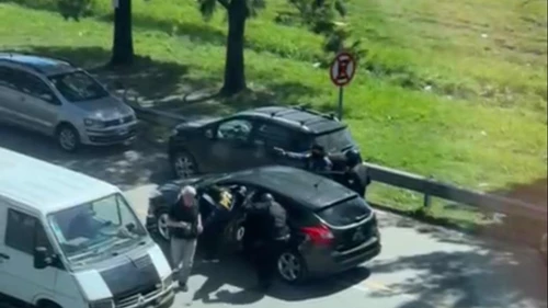 Al huir, los delincuentes interceptaron a un automovilista que circulaba en un vehículo negro, lo obligaron a descender y efectuaron nuevos disparos antes de darse a la fuga. Según los testigos, un hombre intentó detenerlos arrojando un objeto contundente contra el coche, pero no pudo evitar que escaparan.