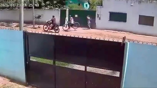 El acompañante se bajó y lo encerró contra un portón para sacarle la bici y luego se subió a la moto. Mientras la acomodaba, una vecina valiente que observó la escena, salió a enfrentarlos a los gritos para evitar que le roben también la mochila.