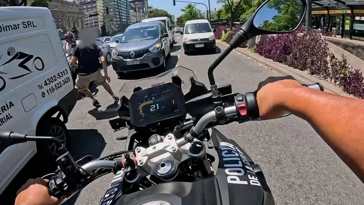 La body cam de uno de los efectivos registró las impresionantes maniobras que debió realizar para alcanzarlo: primero pasó haciendo zig-zag entre los coches a contramano en la 9 de Julio.
