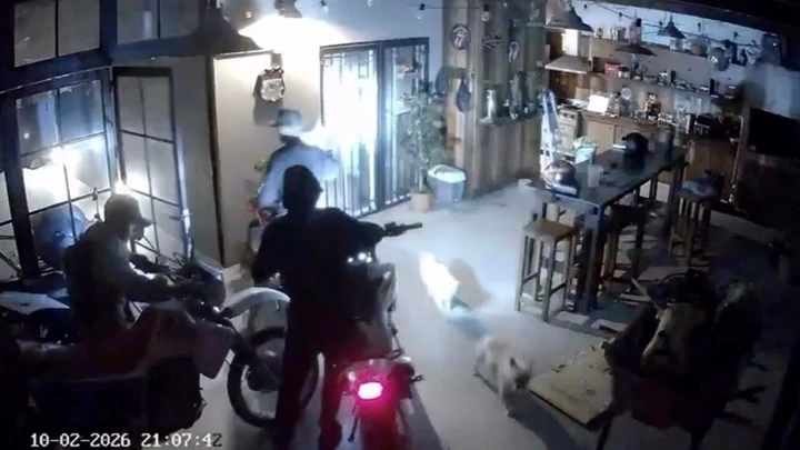 Los asaltantes se agarraron fuerte a la reja que daba a la cocina y comenzaron a tirar para forzarla. Al ver que no cedía se pusieron a discutir qué hacer. Uno insistió con la puerta mientras los otros dos encararon hacia un grupo de motos.