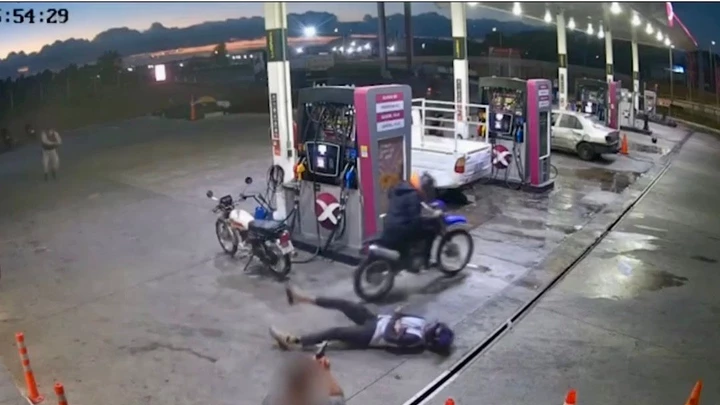 Todo comenzó cuando dos motochorros llegaron hasta el lugar a las 6 de la mañana portando armas y cascos. Uno de ellos se metió al autoservicio y amenazó de forma violenta a las cajeras exigiendo la recaudación.