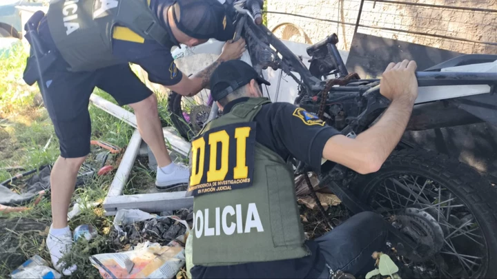 En el sitio demoraron a una mujer de 25 años que estaba en posesión del cuadro de una CORVEN Triax 250 denunciada como robada. Continúan los trabajos para dar con los autores del asalto.