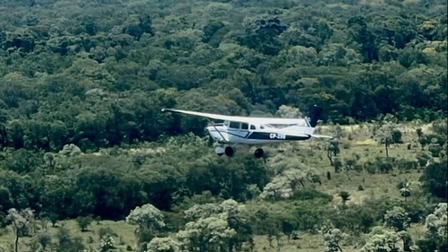 Tras los tiros intimidatorios, la avioneta voló a muy baja altura y realizó un aterrizaje forzado en un camino vecinal de la zona de Capitán Bado, a unos 15 kilómetros del casco urbano. En ese lugar se aproximaron dos vehículos terrestres, lo que motivó nuevos disparos de amedrentamiento al suelo por parte de los aviones interceptores.