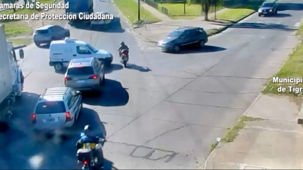 Un motociclista resultó herido, aunque fuera de peligro, luego de protagonizar un fuerte accidente con un auto en la localidad bonaerense de El Talar, partido de Tigre, hecho que fue registrado por las cámaras del Centro de Operaciones Tigre (COT).