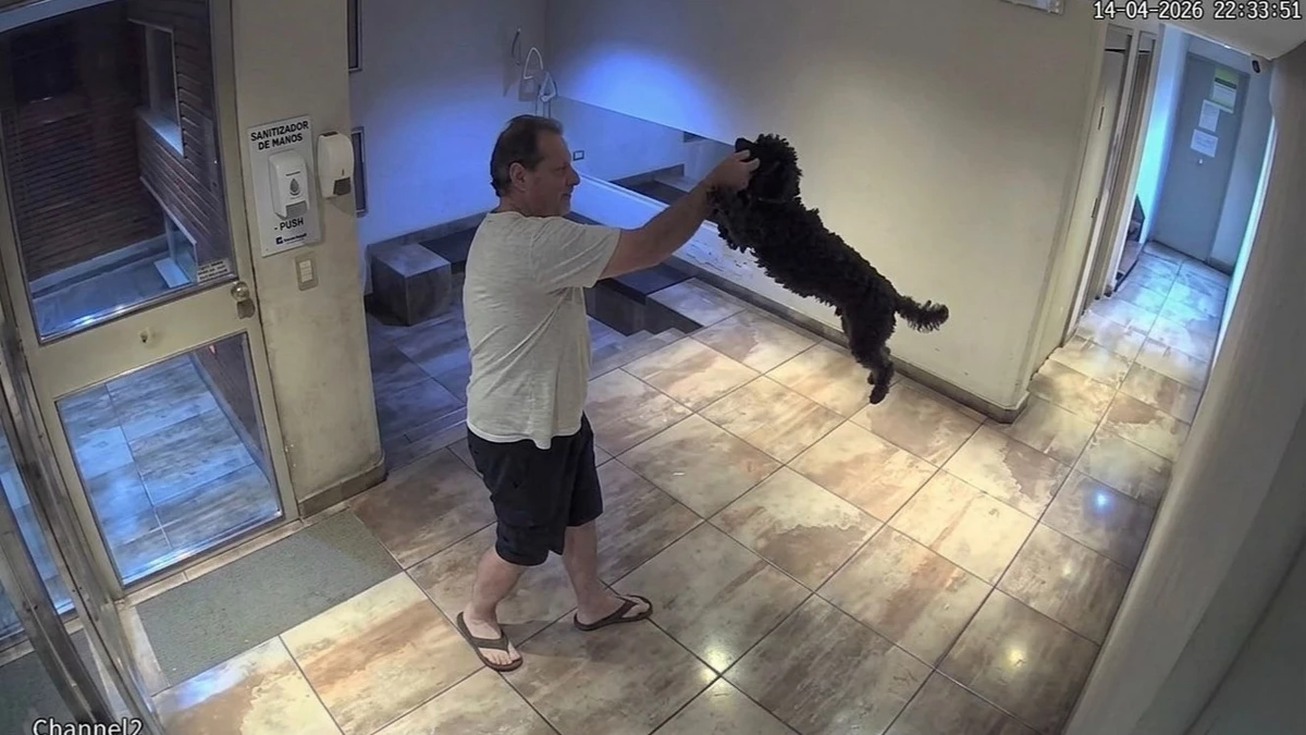 Un hombre quedó escrachado en las cámaras de seguridad mientras maltrataba de manera salvaje a su perro en el hall de un edificio del barrio porteño de Palermo, donde lo arrojó contra el piso para lastimarlo.