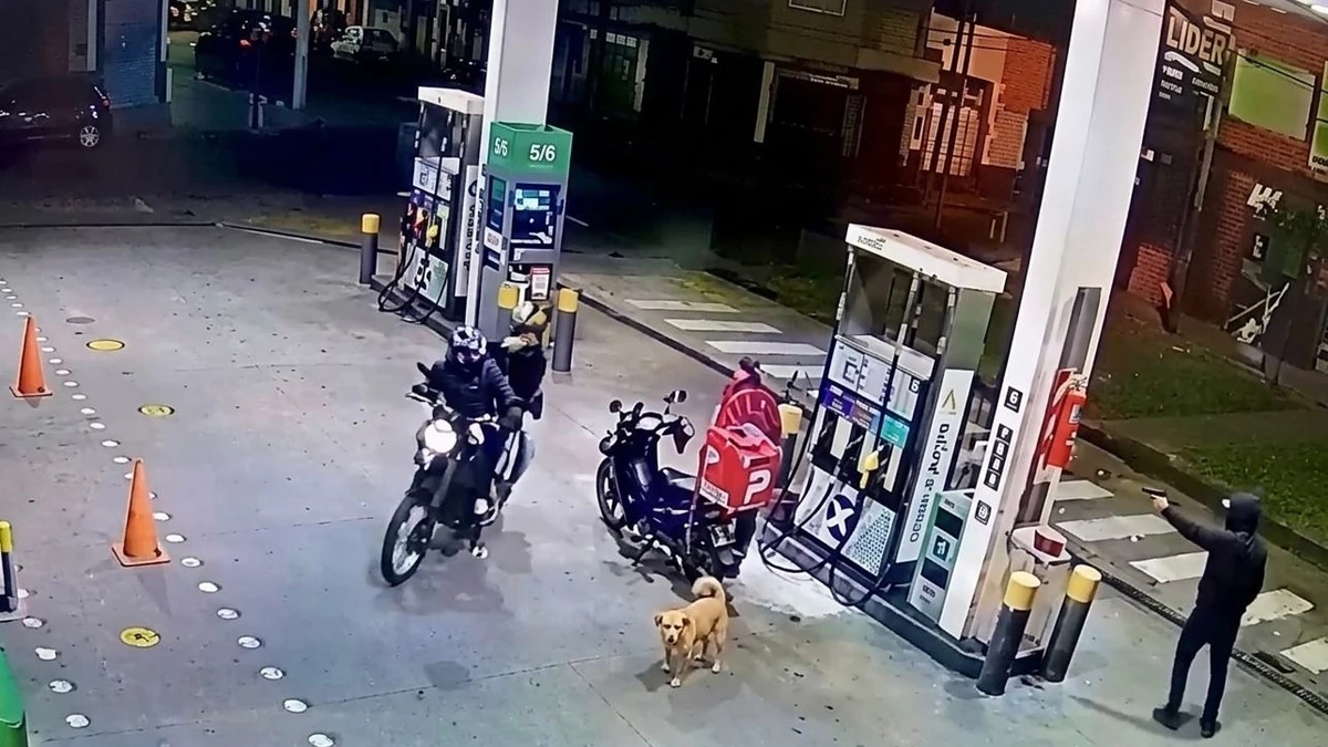 Ante esa situación, el repartidor extrajo un arma de fuego que llevaba en el interior de la mochila térmica y abrió fuego, lo que derivó en un intercambio de disparos en pleno predio de la estación de servicio.