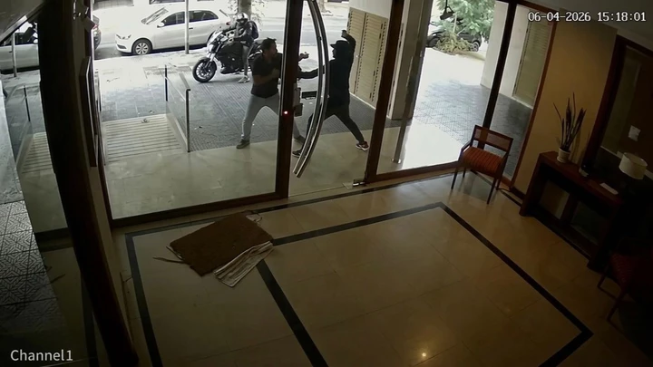 En ese momento arribaron dos ladrones a bordo de una moto y uno de ellos fue irectamente hacia el hombre para robarle el dinero que llevaba en una mochila.