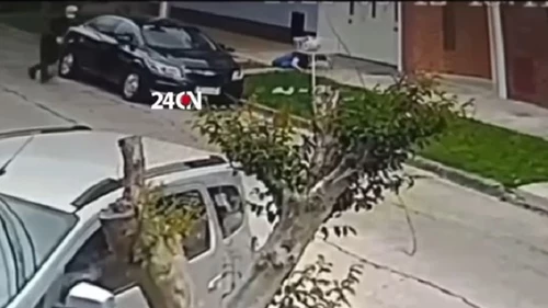 El hecho ocurrió a metros de una mamá con su bebé y la secuencia quedó registrada por las cámaras de seguridad de la zona.