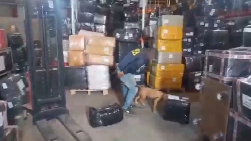 El binomio K9 integrado por el can detector de drogas "Umma" y su guía efectuó una marcación positiva sobre 4 bultos que se hallaban en el depósito de la firma con destino a la Ciudad de Buenos Aires.