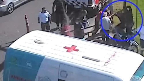 Segundos más tarde, se puede apreciar cómo la motocicleta recibe el violento impacto, justo antes de cruzar la calle Olazábal.