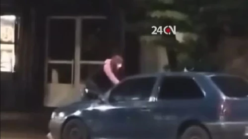 En las imágenes se puede observar cómo la joven se subió al capot del auto en movimiento. "Te van a re escrachar, ¿te podés bajar? Te lo empiezo a romper todo...¡Bajá porque te mato!", le gritó a su ex. Y empezó a golpear con fuerza el parabrisas.