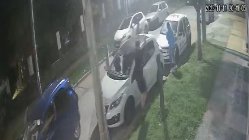 La secuencia quedó registrada en una cámara de seguridad privada en donde, en apenas 30 segundos, se ve cómo los delincuentes abordan al dirigente y a su hijo para robarles las llaves del auto y luego darse a la fuga.
