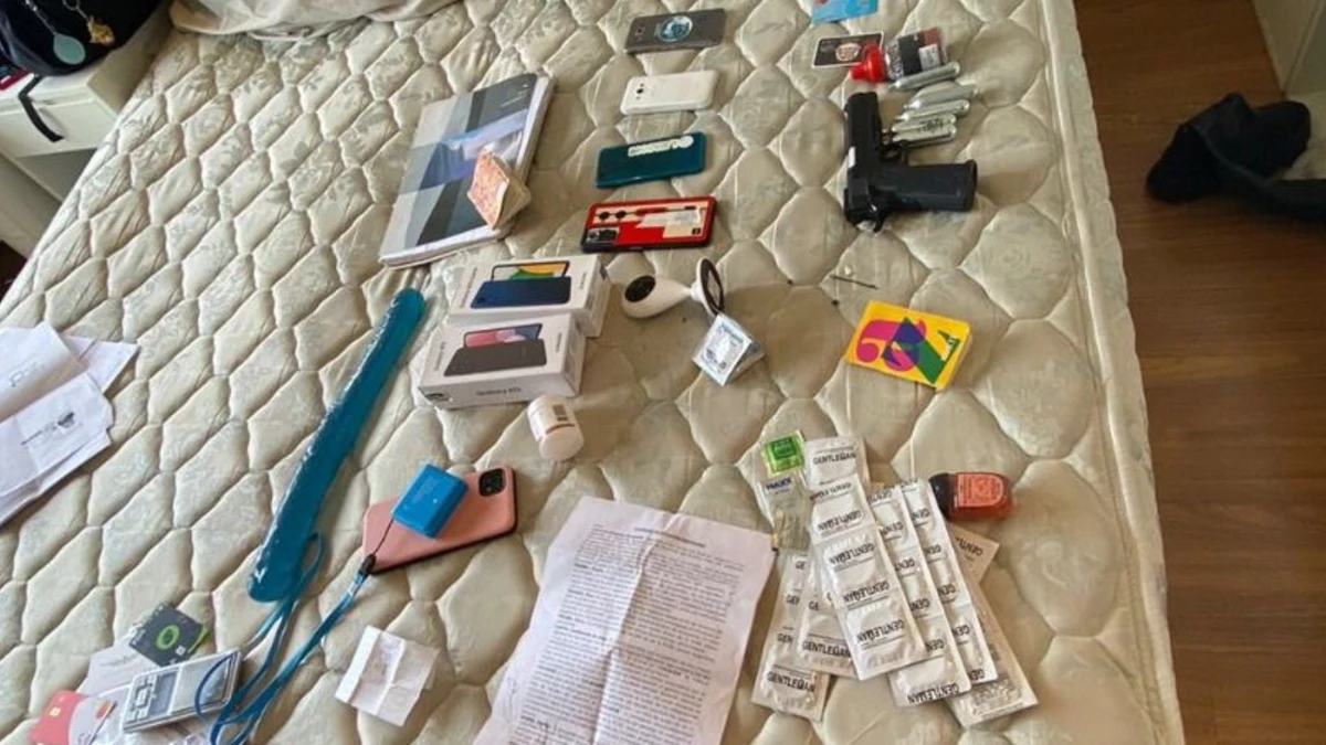 En la requisa secuestraron 20 geles íntimos, un aparato sexual, gran cantidad de preservativos, nueve celulares, una pistola a Gas CO2 con un recipiente con municiones, 1.000 dólares, chip de celulares, posnet de Mercado Pago, una caja fuerte de pared, un contrato de locación y cuadernos con anotaciones.