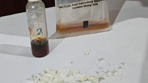 Luego de realizar varios cortes, los gendarmes extrajeron una sustancia blancuzca que al ser sometida a la prueba de campo narcotest arrojó como resultado positivo para metanfetamina con un peso total de 17 kilos 580 gramos.