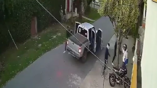 En el video se observa cómo los delincuentes se bajaron de una camioneta y abordaron a la víctima, quien estaba en la vereda junto a su moto.