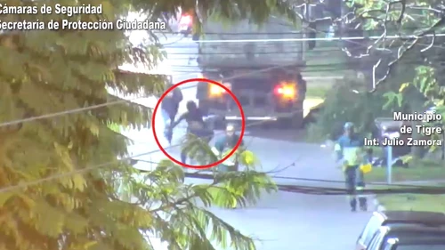 El violento episodio fue registrado por las cámaras de seguridad del distrito, luego de que un vecino denunciara el ataque en la intersección de las calles O´ Higgins y Neuquén. En las imágenes se los ve a los sospechosos arrojando piedras a los trabajadores y huyendo de la zona a paso lento.