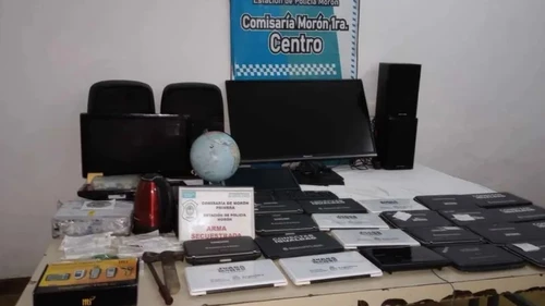 Los investigadores secuestraron una Playstation 4 con dos joysticks, 22 laptops entregadas por el Estado nacional para los estudiantes, un televisor smart, un CPU, cuatro parlantes, un proyector, tres monitores y varios teclados.