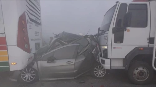 Testigos señalaron que en el momento del accidente la visibilidad era nula por la presencia de humo a causa de la quema de pastizales de campos linderos.