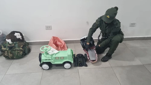 En ese contexto, las fuerzas de seguridad detuvieron a un ciudadano que transportaba una bolsa arpillera y que había entrado al país proveniente de Bolivia. Durante la requisa, los oficiales hallaron dos autos de juguete tipo andador que estaban ocultos en el bulto y presentaban un peso desmedido para la mercadería.