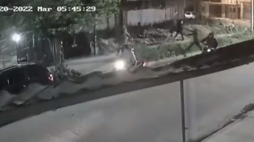 En las imágenes se observa a dos motos con cuatro delincuentes que detienen su marcha. Dos de ellos se bajan armados y les roban sus pertenencias a un grupo de vecinos, mientras que otras víctimas logran escapar corriendo.