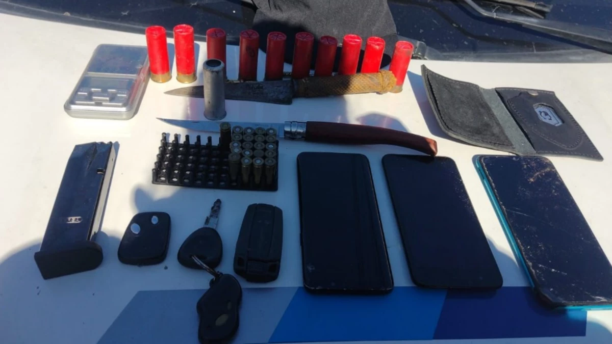 También incautaron un arma de fuego Bersa, un cargador, 10 municiones calibre 9 milímetros, un cuchillo de mango de color negro con hoja plateada, un estuche tipo pistolera y una tonfa policial que estaban ocultos dentro de una fosa con agua y barro ubicada dentro de la casa.