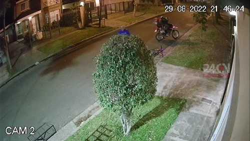 El hecho ocurrió el lunes por la noche, cuando el ciclista volvía a su casa luego de una extensa jornada laboral. Según registraron las cámaras de seguridad de una vivienda de la calle René Favaloro, a las 21.46 los dos delincuentes a bordo de una moto se le cruzan en su camino.