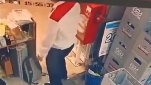 Ocurrió en la sucursal del supermercado "El Nene" ubicada en avenida 60 y 146, en Los Hornos, y la secuencia quedó registrada en las cámaras de seguridad del comercio.