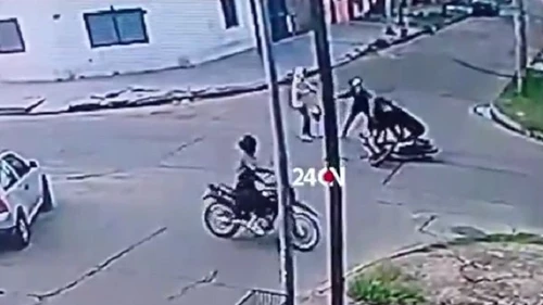El violento hecho, que recién trascendió en las últimas horas, ocurrió este lunes en Las Margaritas y Los Jazmines y todo quedó registrado por las cámaras de seguridad de la zona.