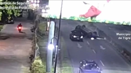 En Troncos del Talar, los dispositivos fílmicos del Centro de Operaciones Tigre (COT) captaron un accidente de tránsito que terminó con un impactante vuelco de uno de los autos involucrados en el hecho.