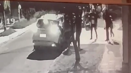 La mujer fue a la casa de sus suegros a buscar a sus dos hijos y cuando estaba por irse, ladrones armados los asaltaron, según se observa en las imágenes de las cámaras de seguridad.