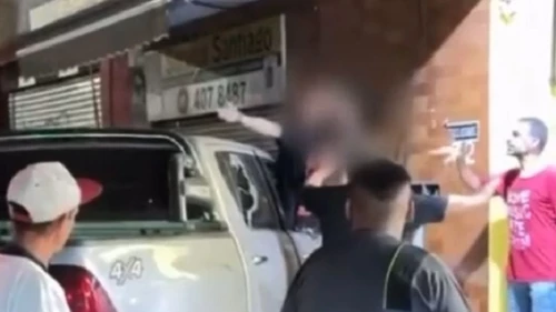Luego del impacto, un grupo de personas intentó agredir al conductor de la camioneta. En medio de la tensión, un individuo rompió de un golpe la ventanilla delantera derecha del vehículo y quedó filmado por otro testigo.