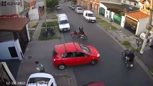 Las dos motos aparecieron de contramano y todos los que caminaban por la vereda sabían que les iban a robar. Las víctimas salieron corriendo, pero los motochorros los persiguieron para asaltarlos, como si se tratara de una cacería que quedó filmada en un video.