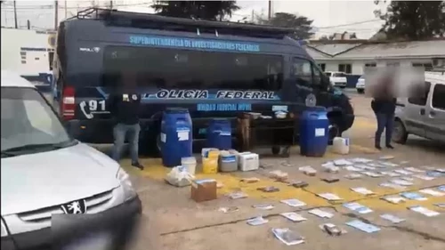 Además, se logró el secuestro de más de ocho kilos de pasta base, más de cinco kilos de clorhidrato de cocaína, tambores y bidones con precursores químicos para el estiramiento de la droga, una cocina industrial, un revólver calibre 22, dos autos, más de dos millones de pesos, dólares y pesos bolivianos.