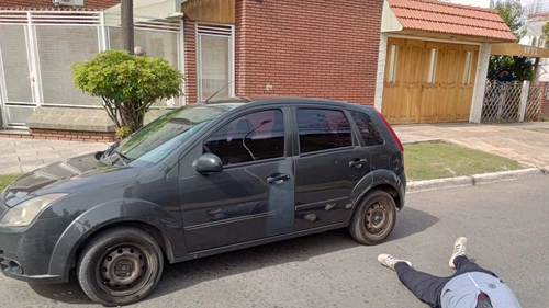 El asaltante cayó herido sobre el asfalto, al costado del Ford Fiesta, y murió a raíz de las graves heridas. El cómplice huyó en una Fiat Fiorino blanca que estaba estacionada a unos metros.
