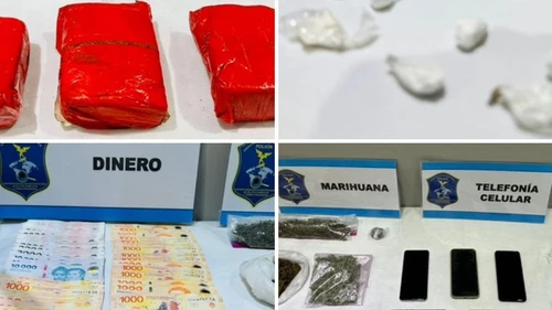 En los allanamientos secuestraron cocaína, marihuana, 184 mil pesos, cinco celulares, dos balanzas digitales, una tijera y documentación de interés para la causa.