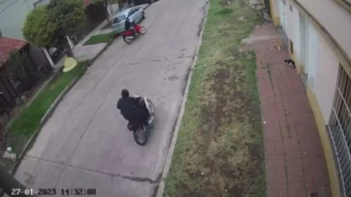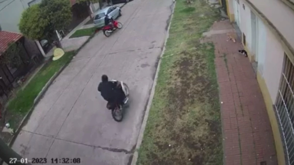 El hecho ocurrió a plena luz del día y quedó registrado por las cámaras de seguridad de la zona. "Quedate quieto porque te mato", lo amenaza uno de los delincuentes mientras le apunta con un arma y en pocos segundos le roba la moto.