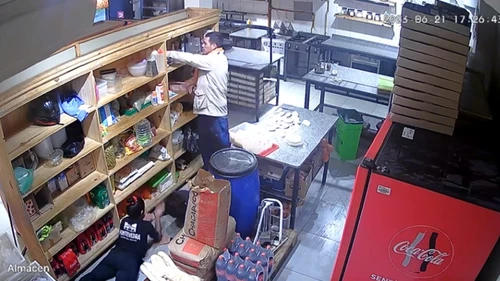El hecho ocurrió el miércoles minutos antes de las 17.30 en la pizzería "Pontevedra", ubicada en Marcos Sastre y 9 de Julio, y quedó registrado por las cámaras de seguridad del local.