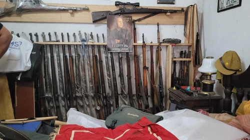 Horas más tarde -y por orden del Juzgado Federal de Primera Instancia de Quilmes, a cargo de Luis Antonio Armella- se llevó adelante el allanamiento del inmueble, en donde se hallaron 43 fusiles y una ametralladora con acuñación de águila nazi; 15 pistolas; 5 bayonetas; una ballesta; dos máquinas de carga; 3000 fulminantes; 3,5 kilogramos de pólvora; 3000 puntas y 2500 vainas de distintos calibres.