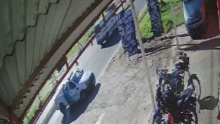Un patrullero que iba en apoyo de un robo derrapó y chocó contra un poste de madera en La Plata. El violento accidente quedó registrado por las cámaras de seguridad.