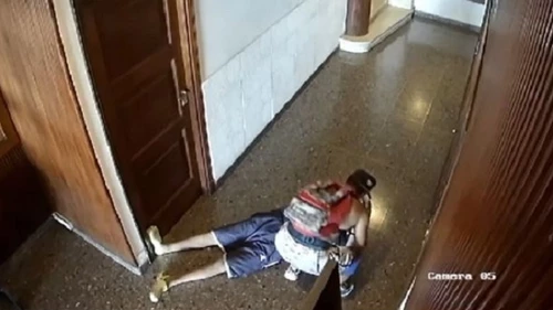El hecho ocurrió en el hall de un edificio ubicado en Boulevard Marítimo Patricio Peralta Ramos al 1900, en la zona de la costa, y quedó registrado por las cámaras de seguridad.