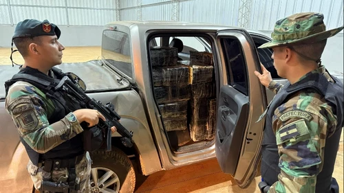 Rápidamente, los efectivos inspeccionaron el lugar y constataron que, dentro de la camioneta y almacenados en el predio, había 121 bultos.