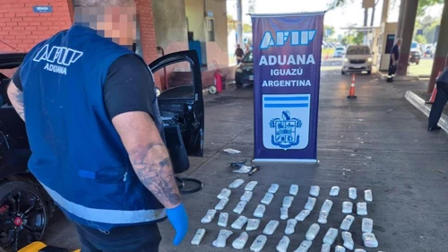 Agentes especializados de la Aduana detuvieron un intento de contrabando de más de 40 kilos de cocaína en la frontera con Brasil. Ocurrió durante un control vehicular en el Paso Fronterizo Internacional Iguazú-Foz de Iguaçu, luego de que el personal de la Aduana advirtiera inconsistencias entre las declaraciones de ambos ocupantes del vehículo, que resultaron detenidos.
