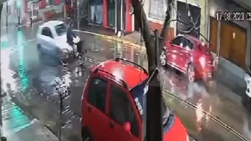 El accidente de tránsito ocurrió cerca de las 6 de la mañana en la avenida Belgrano y Pasteur y Suipacha, partido de Avellaneda, y quedó registrado por las cámaras de seguridad de la zona.
