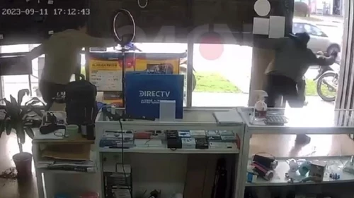 El hecho ocurrió este lunes pasadas las 17 en un local de electrónica ubicado en la avenida 44 y 187 de la localidad bonaerense de Lisandro Olmos y quedó registrado en las cámaras de seguridad del comercio.