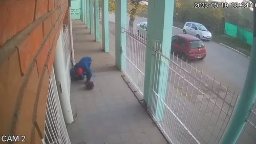 El agresor la tiró al suelo, le arrebató la cartera y escapó corriendo, según se observa en las cámaras de seguridad de la escuela.