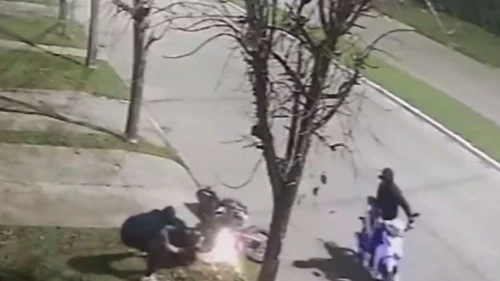El hecho ocurrió en calle 25 y 508 y quedó registrado por las cámaras de seguridad de la zona. La víctima iba en moto y los motochorros se le pusieron a la par para robarle.
